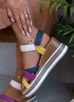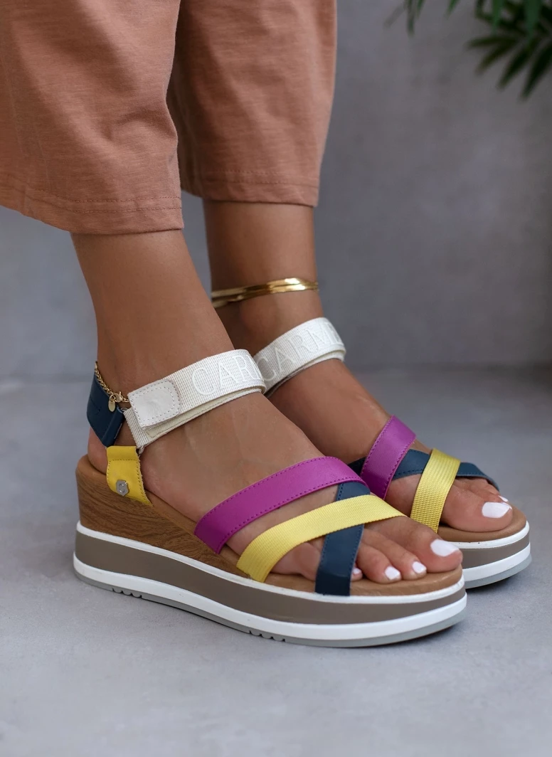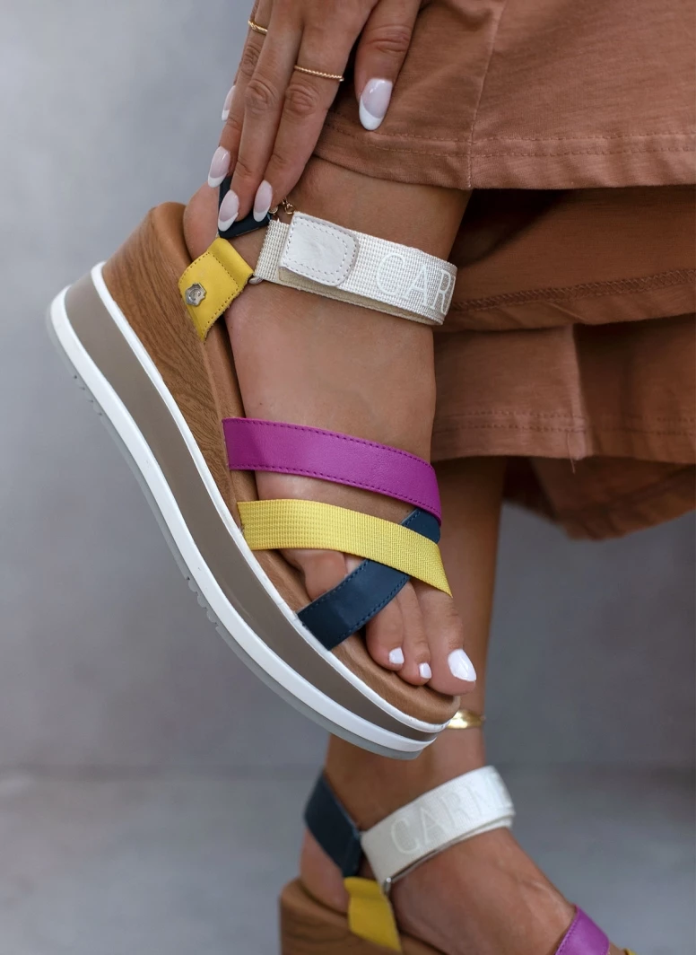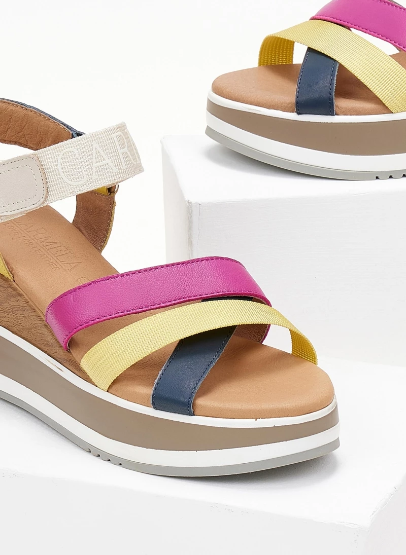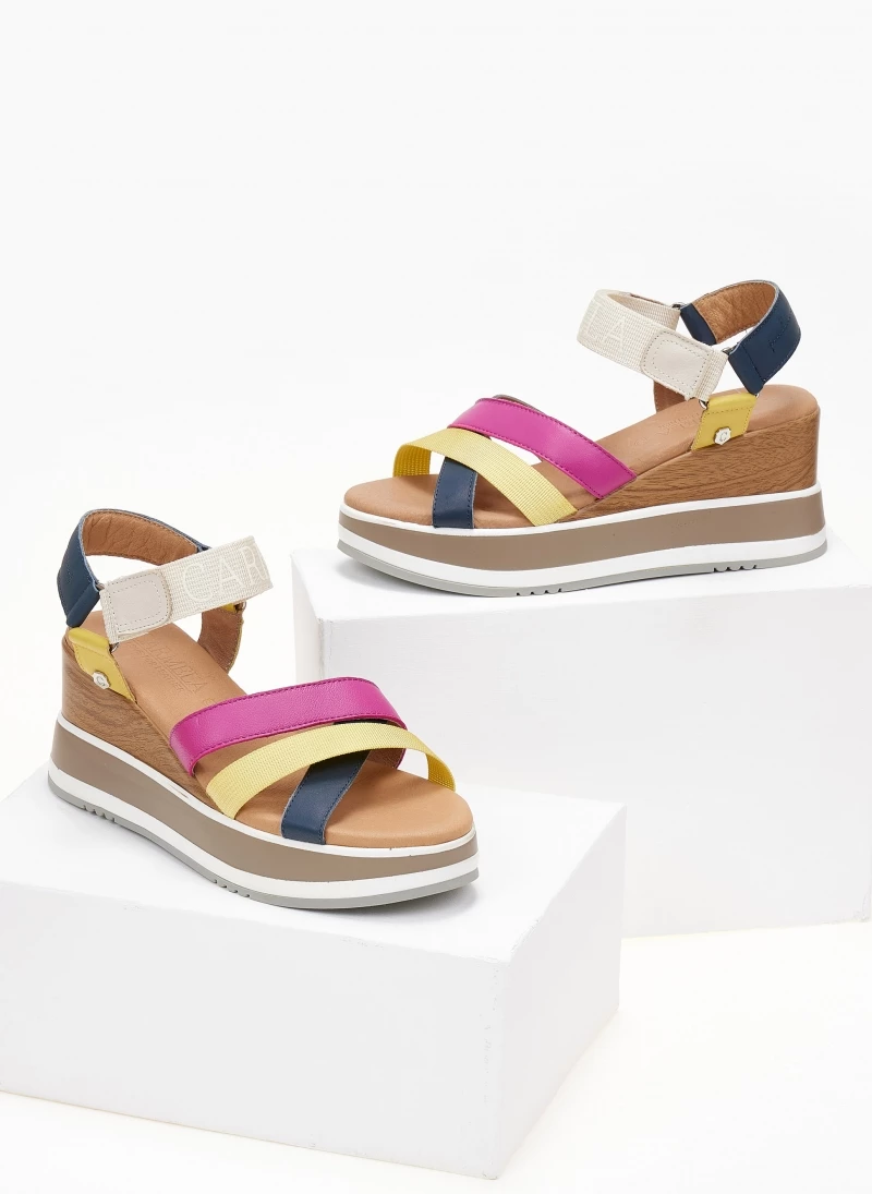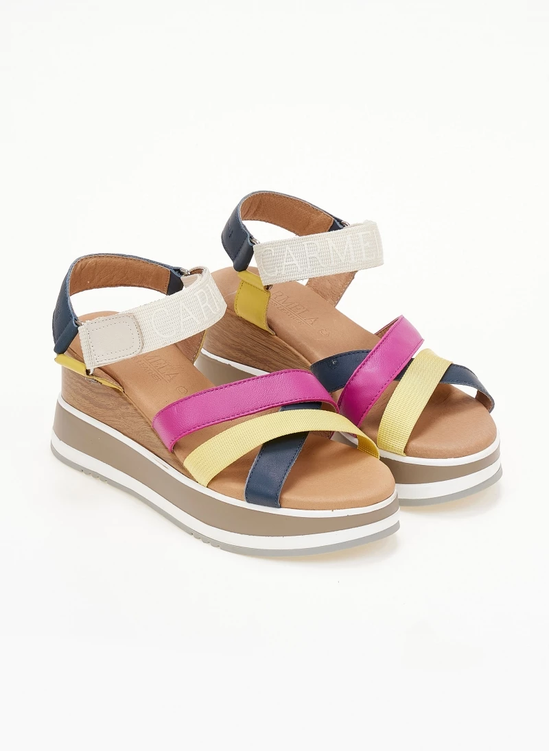 Πλατφόρμες με δερμάτινα χιαστί λουράκια και υφασμάτινο velcro αυτοκόλλητο. Διαθέτει δερμάτινο πάτο με ενίσχυση. Η σόλα είναι μαλακή.