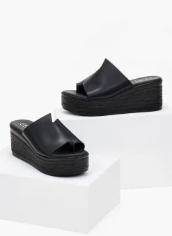 Προώθηση 🌟 Best Pirce 🧨 The Fashion Project Πλατφόρμες σατέν με ψάθα στη σόλα – Μαύρο ⌛ ✨