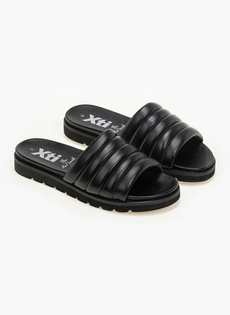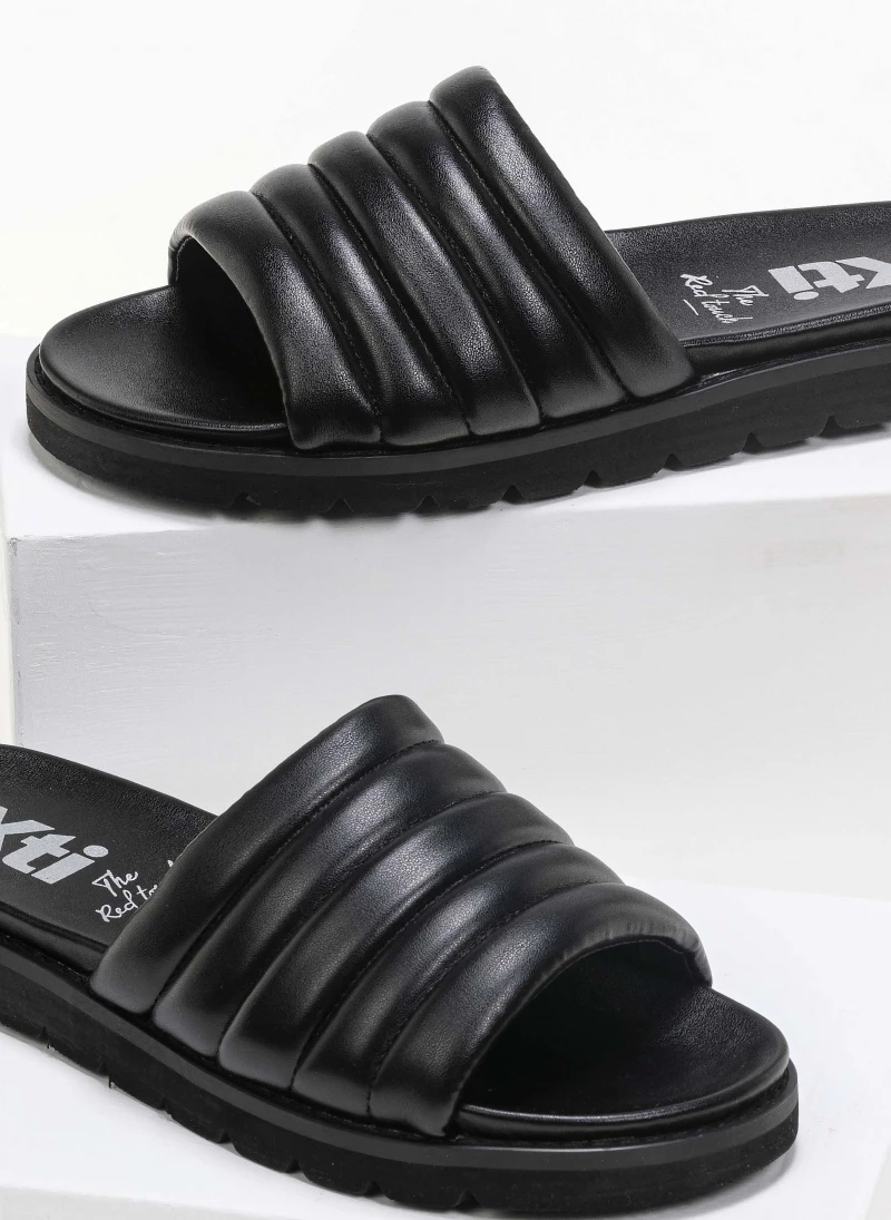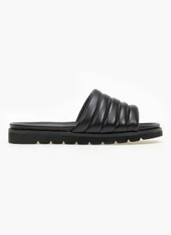Κουπόνι 👍 Εξοδος 🔔 Tfp Slides με φαρδιά καπιτονέ φάσα – Μαύρο ✨ 👏