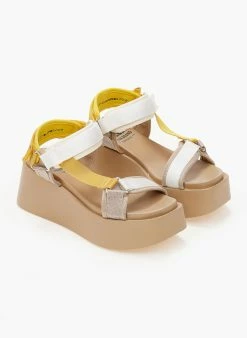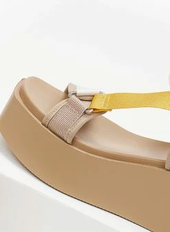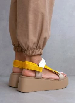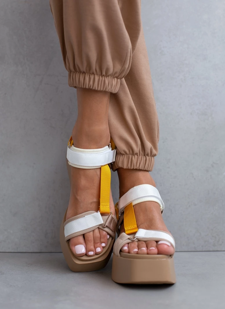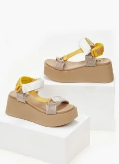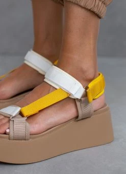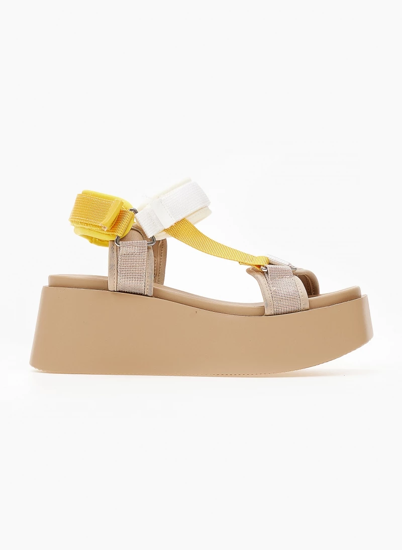 Πλατφόρμες σανδάλια σε καρέ γραμμή.Έχουν φαρδιές υφασμάτινες φάσες με velcro αυτοκόλλητα.Vegan approved.